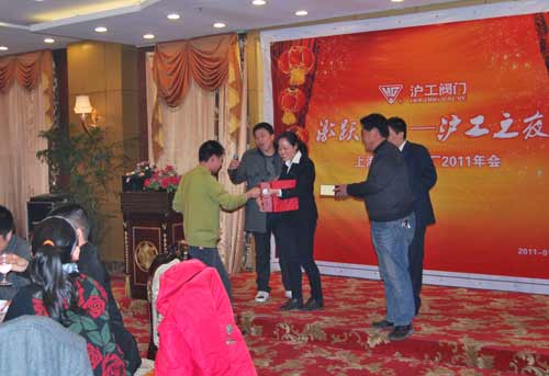 歌曲之后繼續(xù)抽獎環(huán)節(jié),上圖為柯主任在為員工抽獎并頒獎!